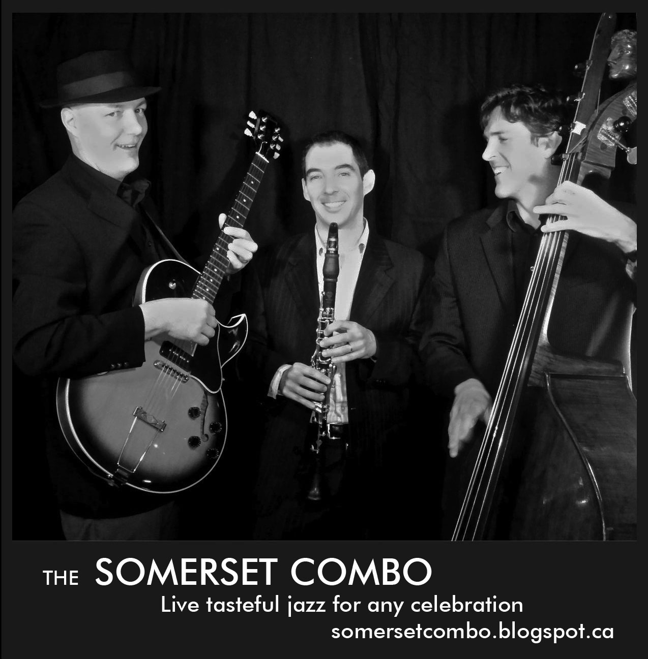 The Somerset Combo plays live tasteful jazz for any celebration. The unique sound these three very accomplished musicians create will have you feeling like you've been transported to a cafe in Paris, as the three instruments blend seamlessly into one voice. We play a wide variety of standards as well as popular acts like The Beatles and Stevie Wonder. The Somerset Combo is Ric Denis on guitar, Tobias Meis on string bass, and Tony Stuart on clarinet. Ric Denis is an Honours Graduate from the Applied Music Program at Mohawk College in Hamilton, Ont. and has been professional guitarist, singer/songwriter, performer, and teacher, for over 25 years. Tobias Meis, since completing a degree in Music Performance from the University of Calgary, has played string bass professional with several symphony orchestras for twenty years. Tony Stuart, formerly with the Canadian Armed Forces Concert Band, has been playing professionally for nearly twenty years.